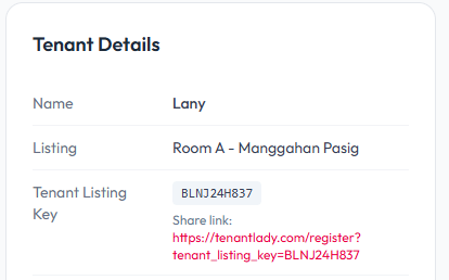 Allows the landlord to share a unique link for a specific tenant. When the tenant registers using this link, they are automatically linked to the listing, and only the bills assigned to that tenant will appear in their account.