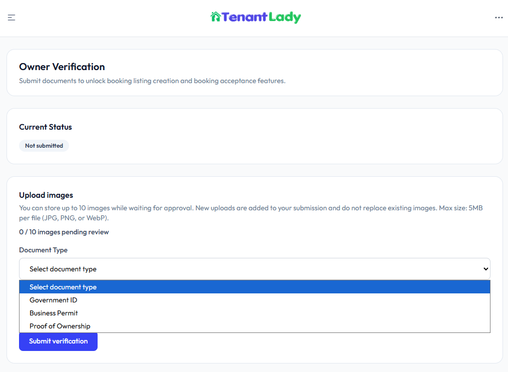 Description:Submit valid identification documents to verify your account and unlock booking features, including creating listings and accepting bookings. Veri...